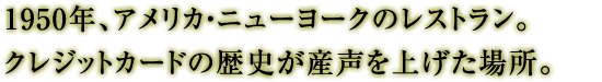 1950年にアメリカで生まれた「ダイナースクラブ」は、その名のとおり「美食家(diner)」のために生まれたサービス。創業者フランク・マクナマラがニューヨークのレストランに夕食に出たときに、彼は現金を別のスーツのポケットに入れたままだったことを忘れ、会計ができず大変困った経験をしました。