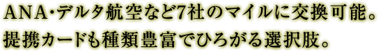 また、利用する航空会社が固定されている場合は、ANAダイナースクラブ・JALダイナースクラブ・DELTAダイナースクラブなどの提携カードを利用するのがおすすめ。特に、グローバルマイレージに含まれないJALはこちらを選ぶと◎。
